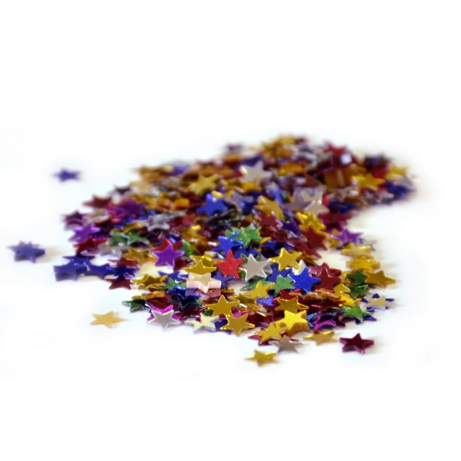 Pour parsemez votre table d'étoile pourquoi ne pas vous en servir de ce sac de confettis. Vous pourrez aussi les mettre dans un plat ou même près d'un vase pour faire une belle décoration. Ils sont en forme d'étoiles, multicolore, ces étoiles font 5mm. Ce sachet de confettis fait 14g.