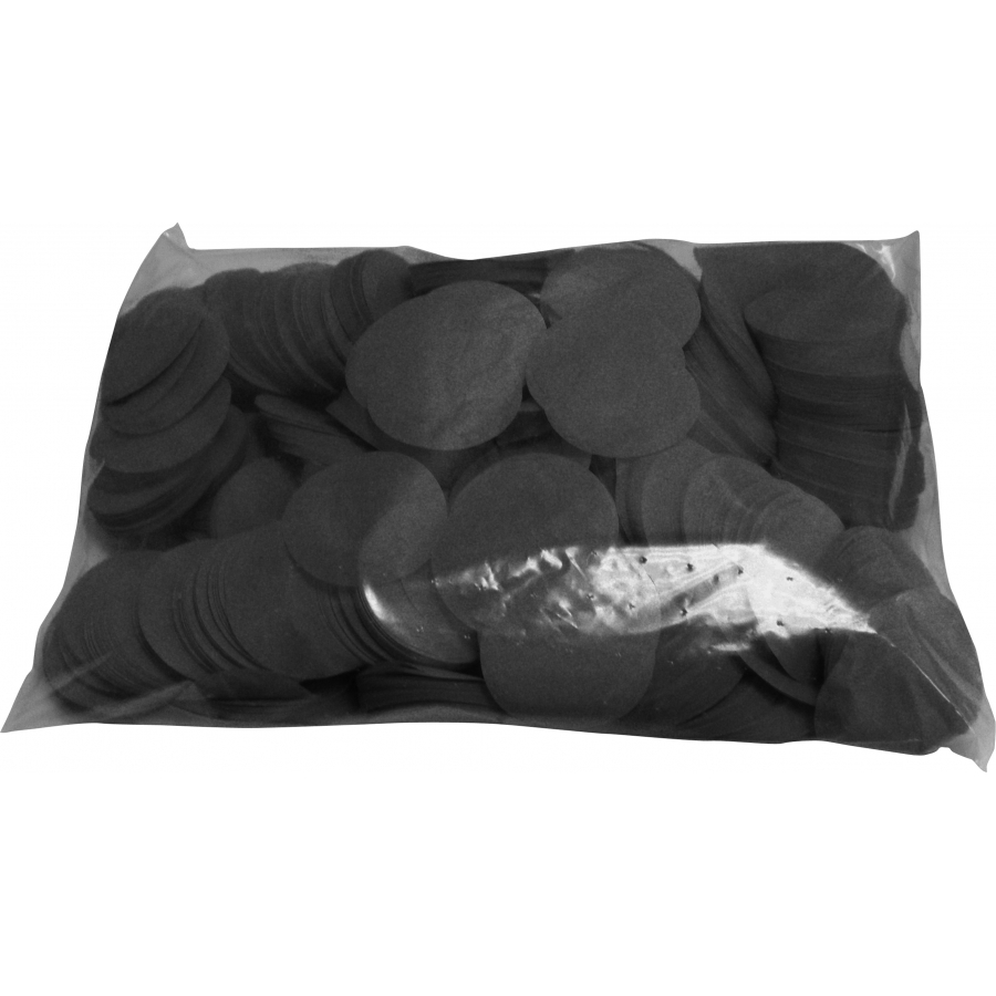 Sachet contenant 1 kilo de confettis de scène ronds de couleur noir. Chaque confetti possède un diamètre de 5 centimètre et est fabriqué en matière ignifugée et biodégradable. Cette couleur de confetti peut être mélangée à plusieurs autres ou utilisée seule pour Halloween.