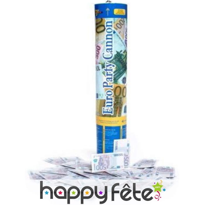 Canon à confettis et faux billets de 500 euros. Tournez les deux parties du canon pour enclencher le système à air comprimé et déclencher le tir de billets. Surtout, ne visez personne lorsque vous tirez, tirez en l'air. Idéal pour des soirées de folie.