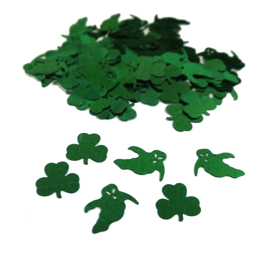 Au milieu d'une fête, lorsque l'ambiance commence à se réchauffer, le moment de lancer les confettis est arrivé ! Ceux-ci sont des modèles spécialement dédiés à la Saint-Patrick. Ils sont de couleur verte et vous pourrez distinguer deux formes distinctes : des fantômes et des trèfles. Vous disposerez d'un sachet de 14 grammes, à utiliser sans modération, car à la Saint-Patrick, tout le monde doit s'amuser !