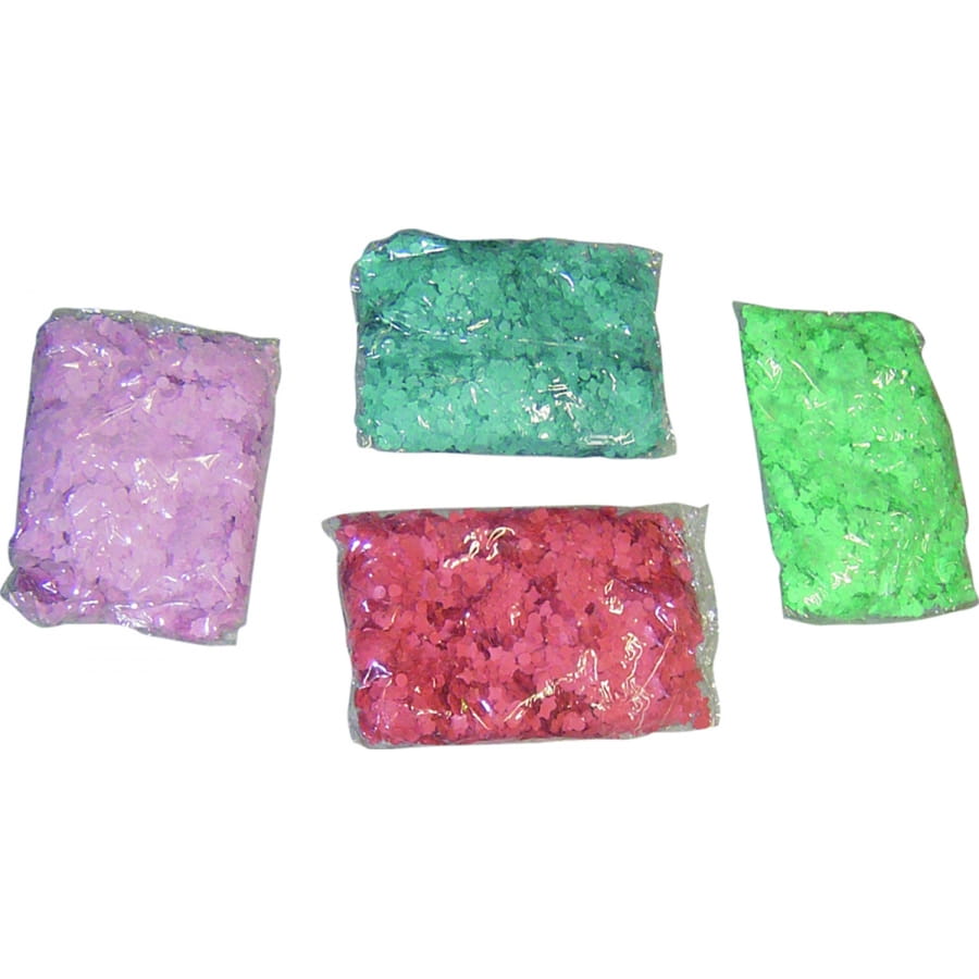 Un sachet de 100 g de confettis unicolores. Il est impossible de choisir ni la couleur ni le modèle des confettis. Il sera livré en bleu, rose, rouge ou vert. Cet accessoire est parfait pour un carnaval ou un anniversaire.