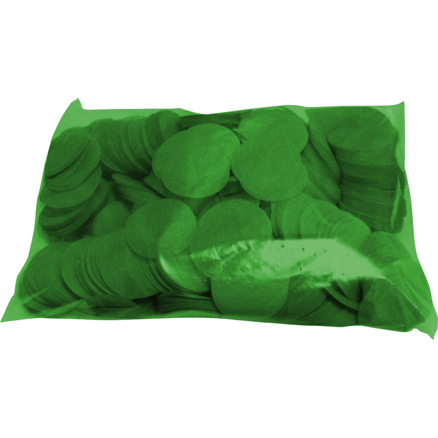 Sachet de confettis de scène ronds ignifugés et biodégradables de couleur vert foncé. Chaque confetti mesure 5 centimètres de diamètre et le sachet mesure 1 kilo. Faites voler ces confettis lors d'un festival de la Saint Patrick.