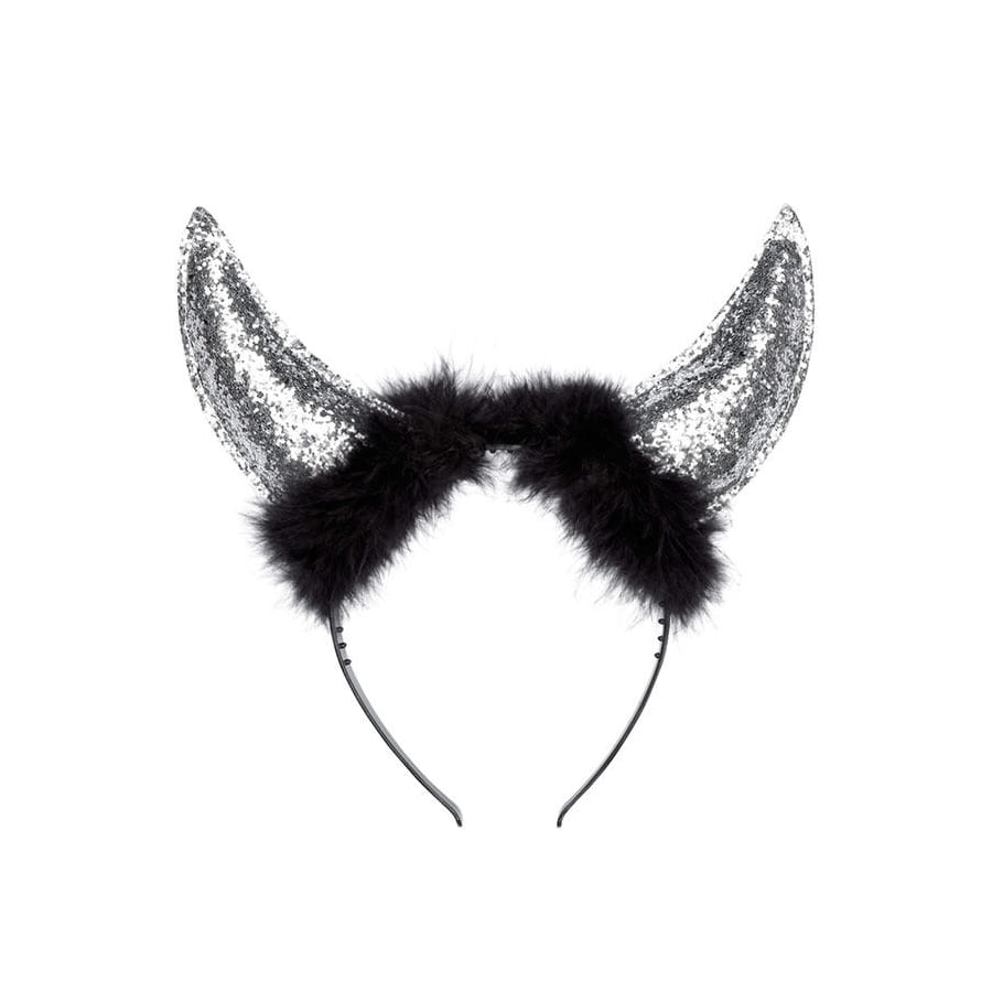 C'est un serre-tête avec des cornes pailletées disponibles en couleur rose, or, argent et rouge (au choix).