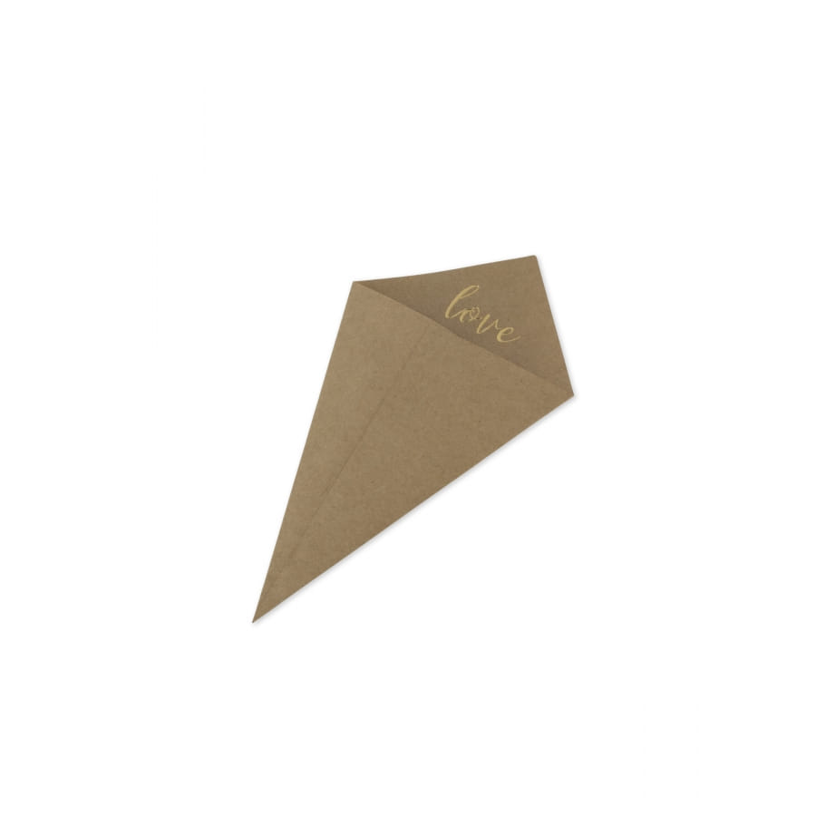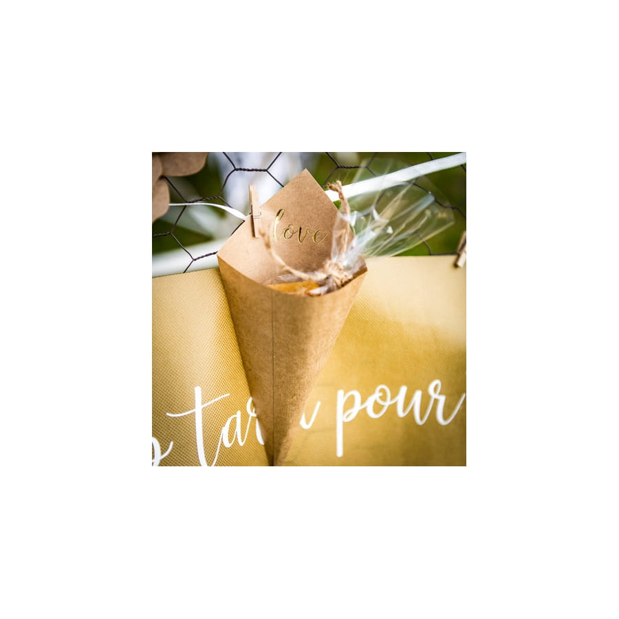 Mais ce n'est pas tout! Le dessus de ces cornets est décoré du mot "Love" en lettres dorées. Parce qu'après tout, l'amour est ce qui nous rassemble lors de cette journée spéciale. Cette petite attention fait toute la différence et reflète toute l'émotion du moment.