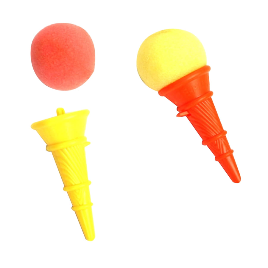 Chouette alors, un jouet en forme de cornet de glace pour vos adorables bambins ! Il s'agit d'un cornet lance balle de couleur rouge. Il est constitué par un cornet fourni avec une balle en mousse, le tout faisant 10 cm de dimension. La couleur est variable selon la disponibilité en stock.
