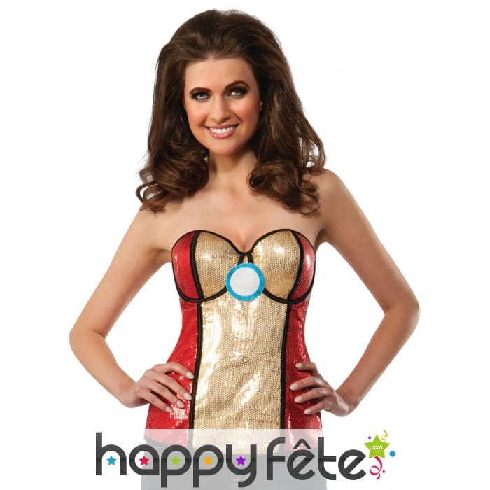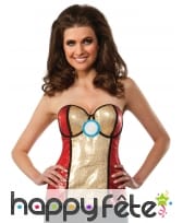 Féminisez avec style un costume de superhéros, en revêtant ce corset de Iron man scintillant pour femme.