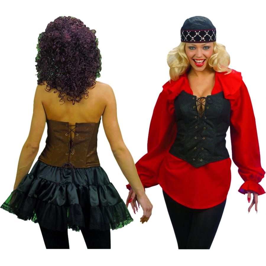 Pirate et séductrice, deux en un avec ce corset de pirate suédine. Cet accessoire est disponible en taille M. Il est impossible de choisir le modèle ou la couleur lors de la commande. Vous recevrez le corset en marron ou en noir. Il est parfait pour compléter un déguisement de pirate ou de corsaire.