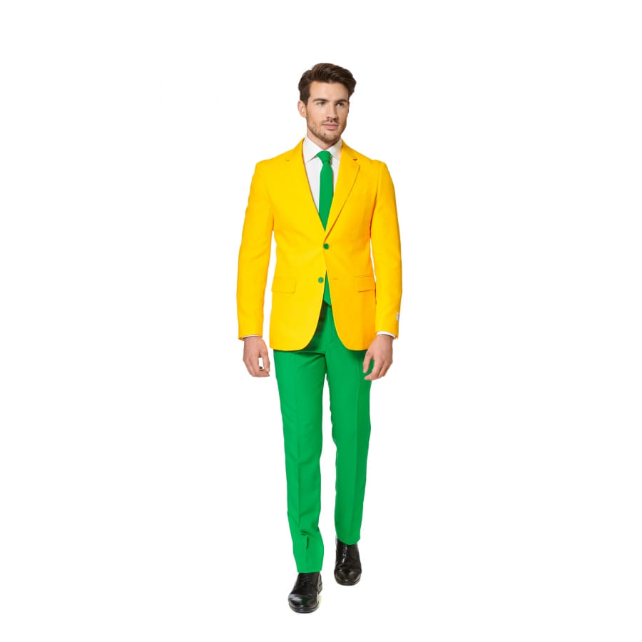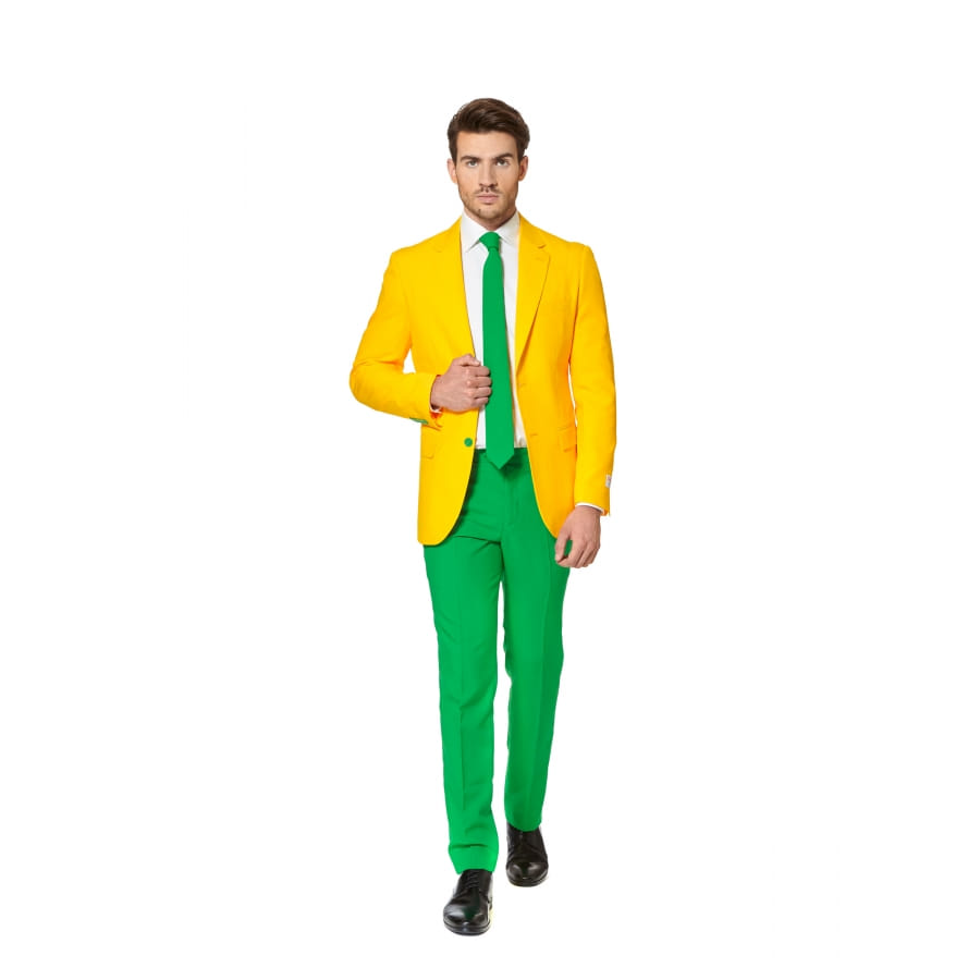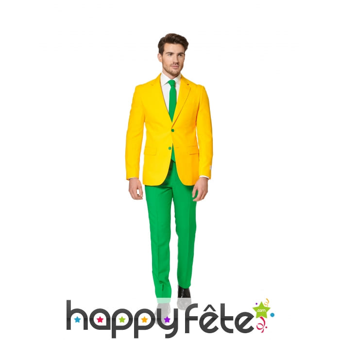 L'ambiance caliente sera assurée lors d'une soirée brésilienne grâce à cet élégant costume 3 pièces aux couleurs du Brésil pour adulte.