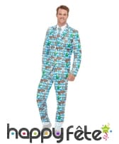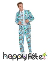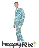 Il est question d'un costume comportant une veste, une cravate et un pantalon.