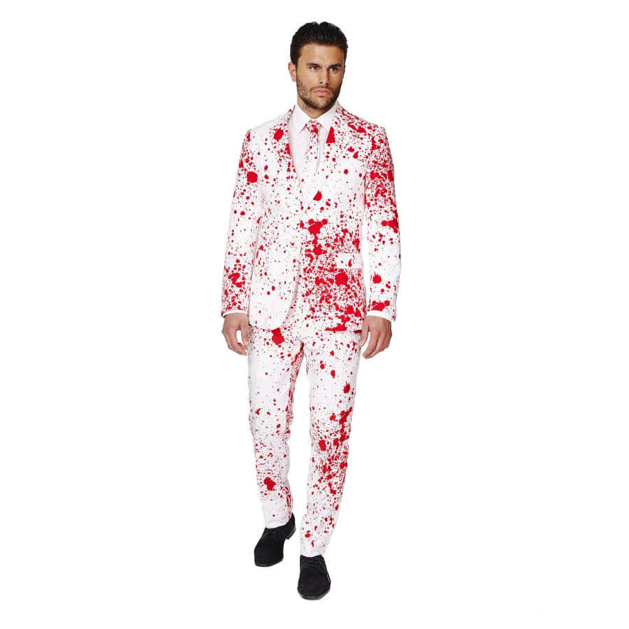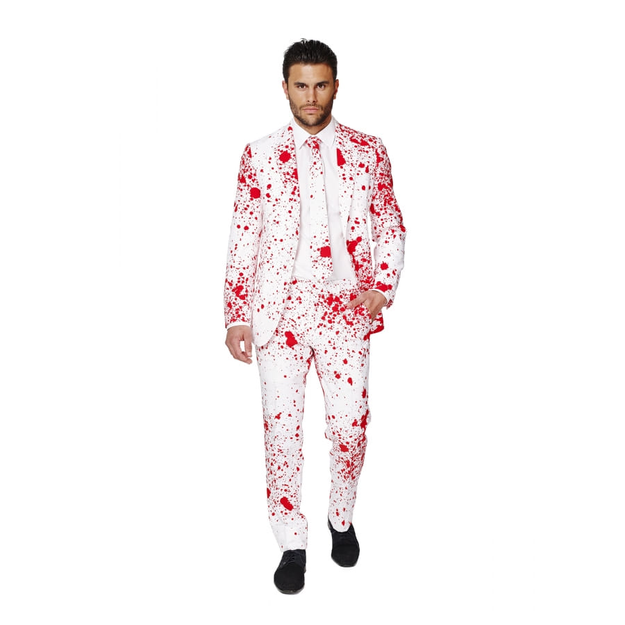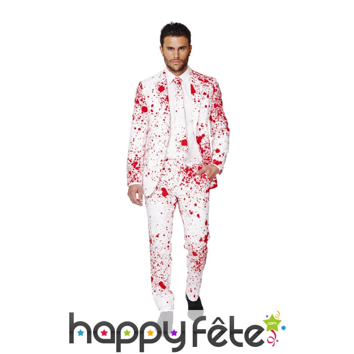 Soyez original et chic durant vos soirées déguisées grâce à ce Costume 3 pièces blanc taché de sang.