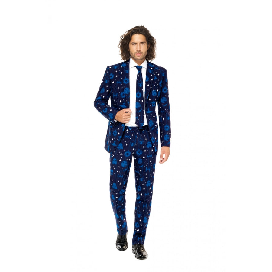 Plongez dans l'univers de la Guerre des Étoiles lors d'un carnaval ou d'une fête déguisée avec ce costume 3 pièces bleu imprimé Star Wars pour adulte.