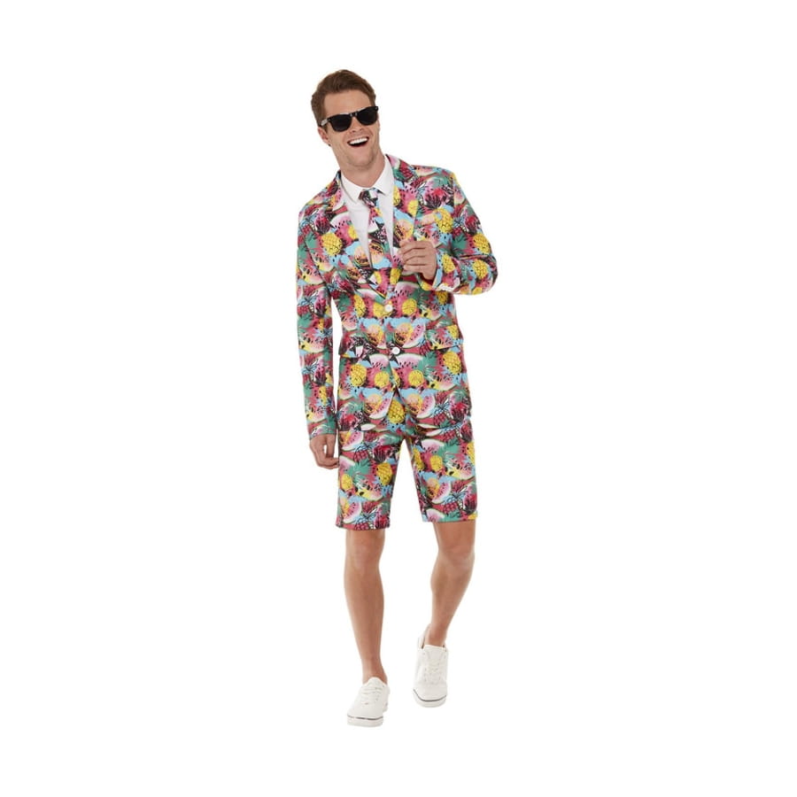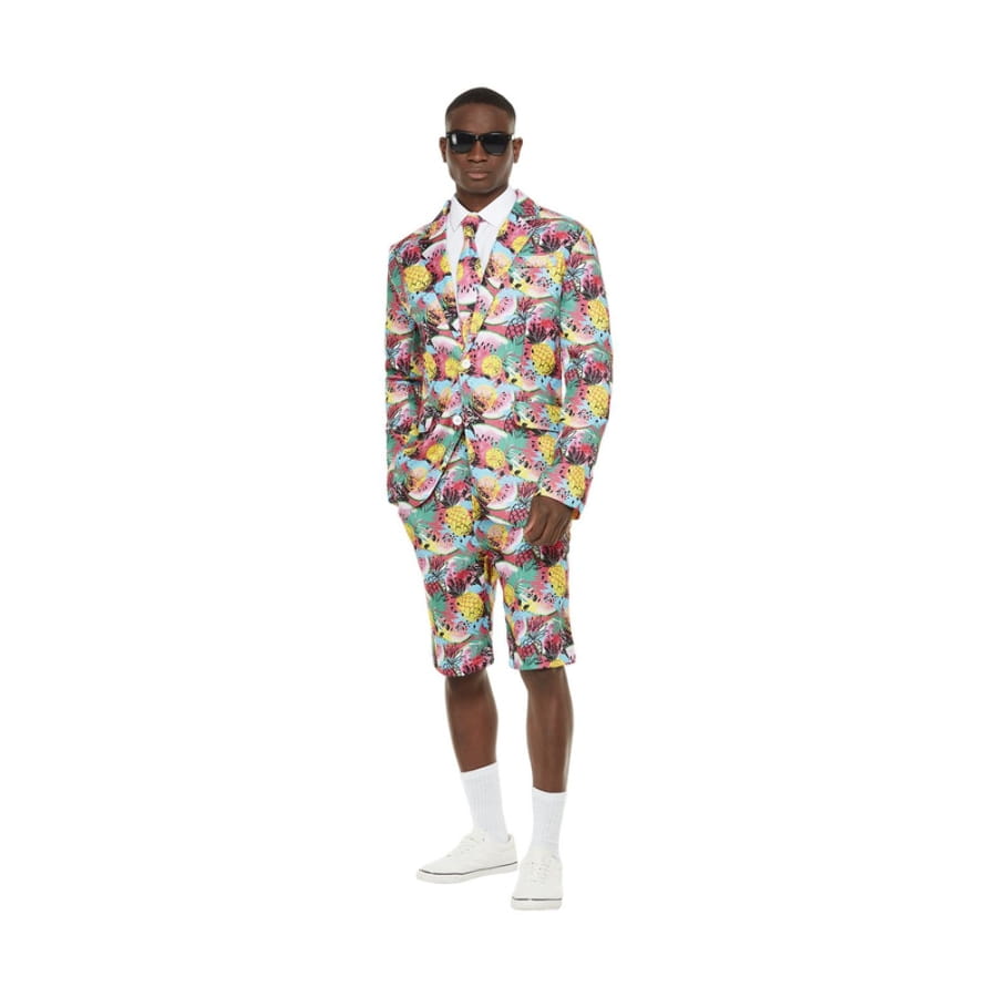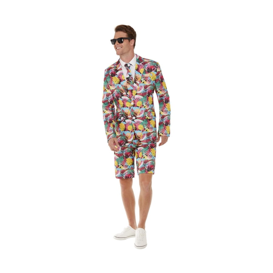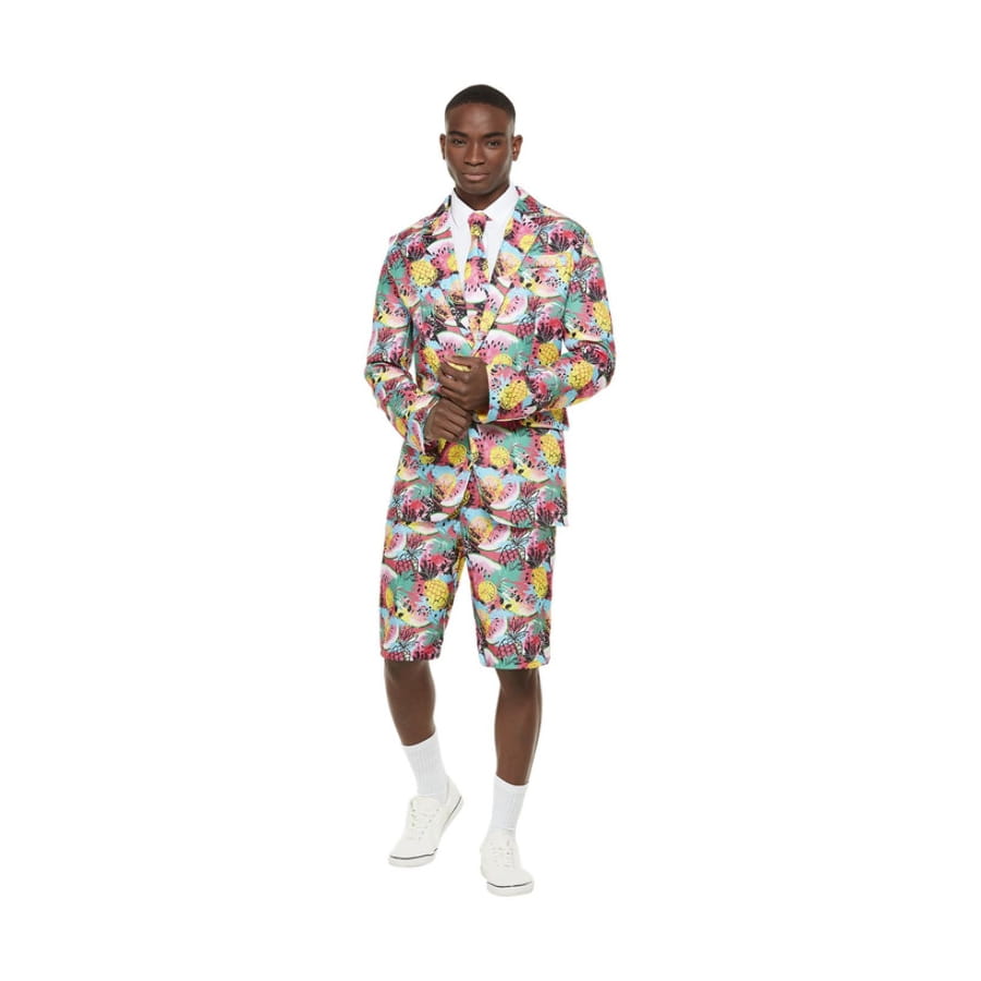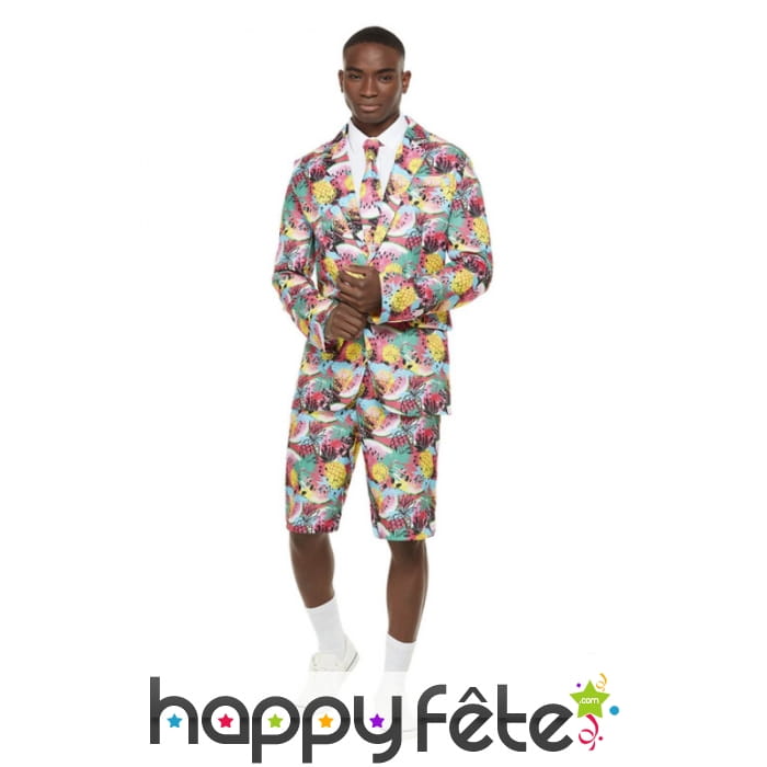 Maintenez votre style chic, classe et élégant même en saison estivale, en arborant ce costume 3 pièces d'été imprimé fruits exotiques.