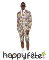 Nous parlons ici d'un costume qui comprend une veste, un short et une cravate.