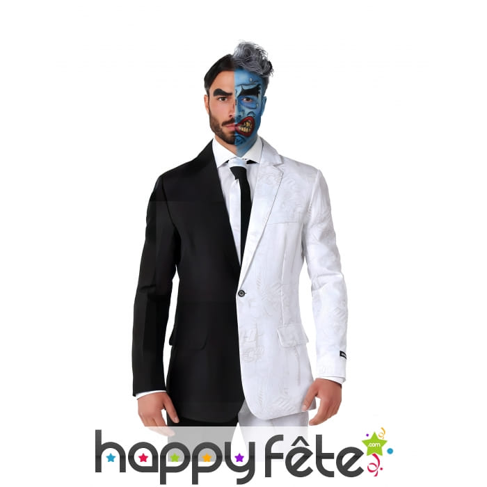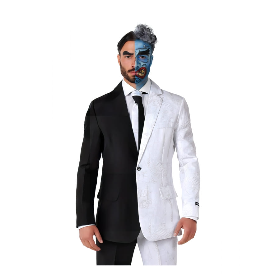 Si vous cherchez un déguisement unique et original pour votre prochaine soirée déguisée, le costume 3 pièces de Double Face est la solution idéale ! Arborant un style bicolore noir et blanc, ce costume vous fera incarner un personnage de bande dessinée tout droit sorti de l'imagination de l'univers du Joker.