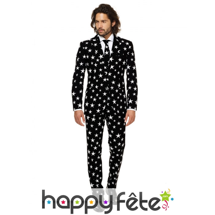 Le costume 3 pièces étoiles sur fond noir est un ensemble pour homme de la marque Opposuits.