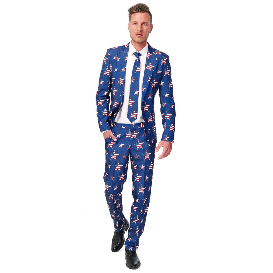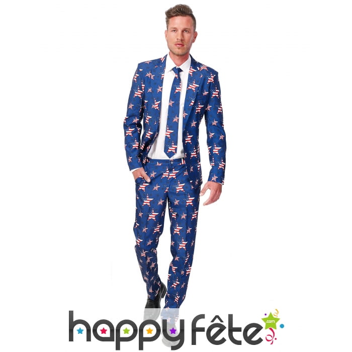 Notre costume 3 pièces étoiles USA est l'ensemble idéal pour tous ceux qui veulent montrer avec classe leur passion pour le pays de l'oncle Sam.