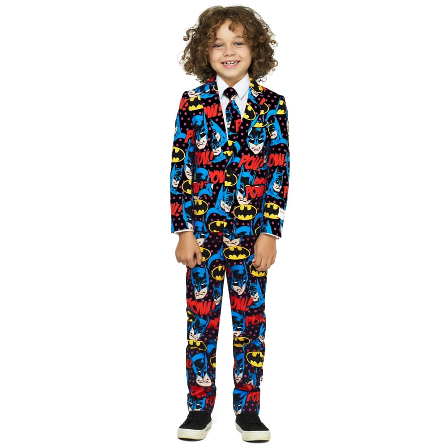 Avec ce costume 3 pièces imprimé Batman pour enfant, votre fils incarnera avec style et élégance un super-héros de dessins animés.
