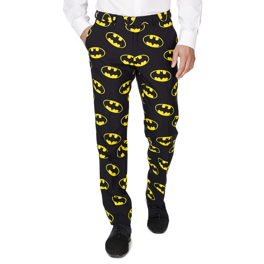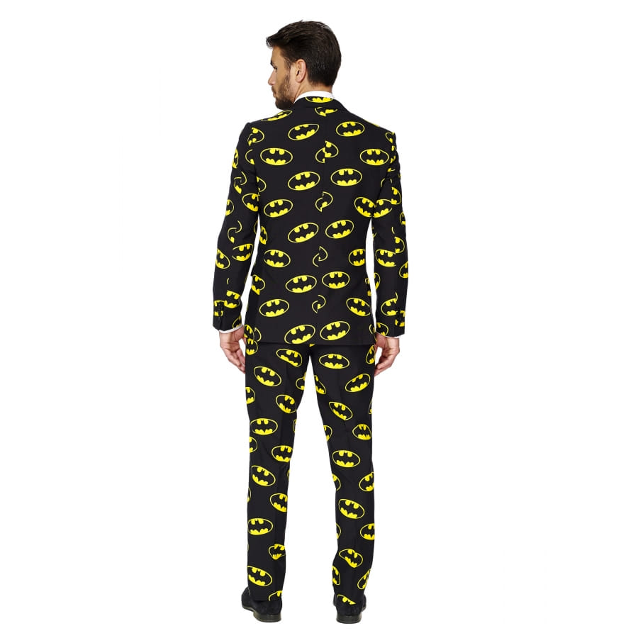 C'est un ensemble fait dans un tissu de qualité supérieure noir et floqué de motifs de chauve-souris jaunes.