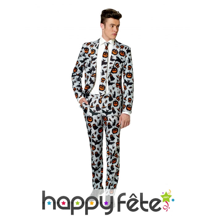 La classe sera assurée le soir d'Halloween avec ce costume 3 pièces motifs halloween pour adulte.