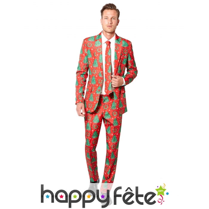 Vous en avez désormais la possibilité grâce à notre costume 3 pièces rouge décoré de sapins.