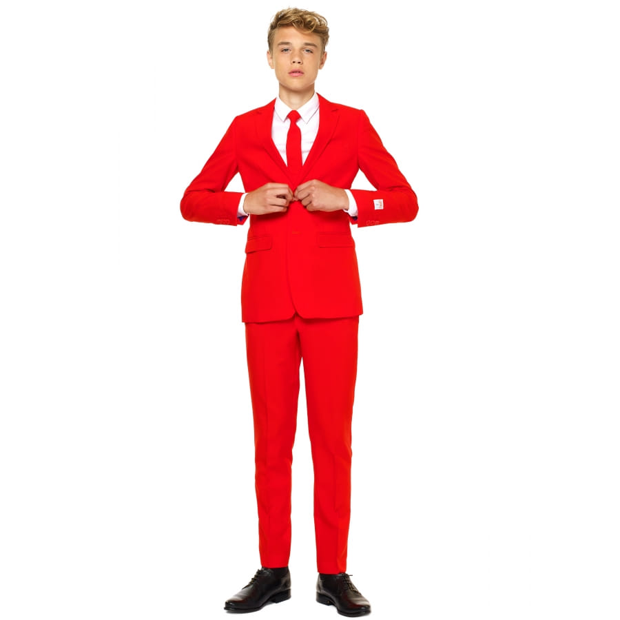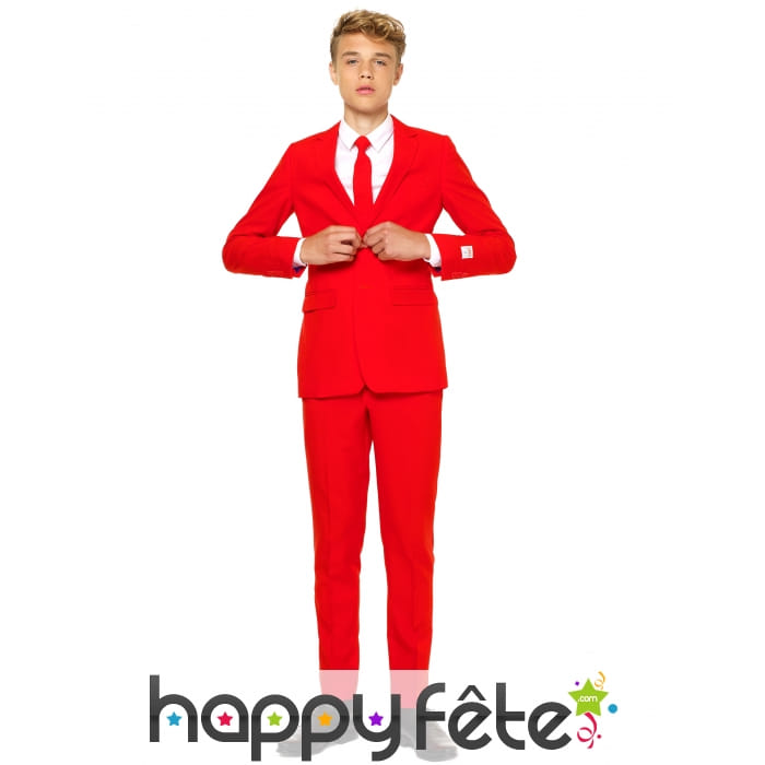 Le costume 3 pièces rouge uni pour ado est un déguisement sous licence officielle Opposuits.