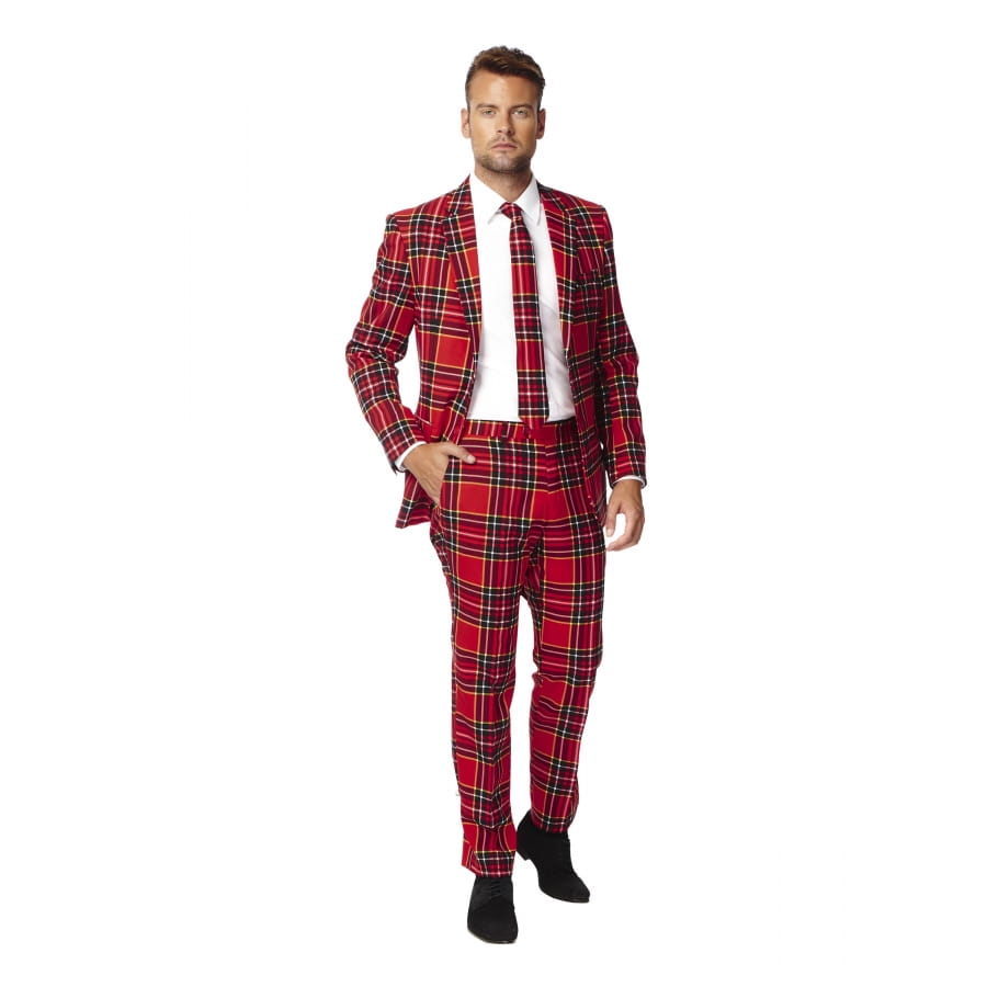 De marque Opposuits&trade, ce déguisement comporte une veste en tartan écossais sur un fond complètement rouge.