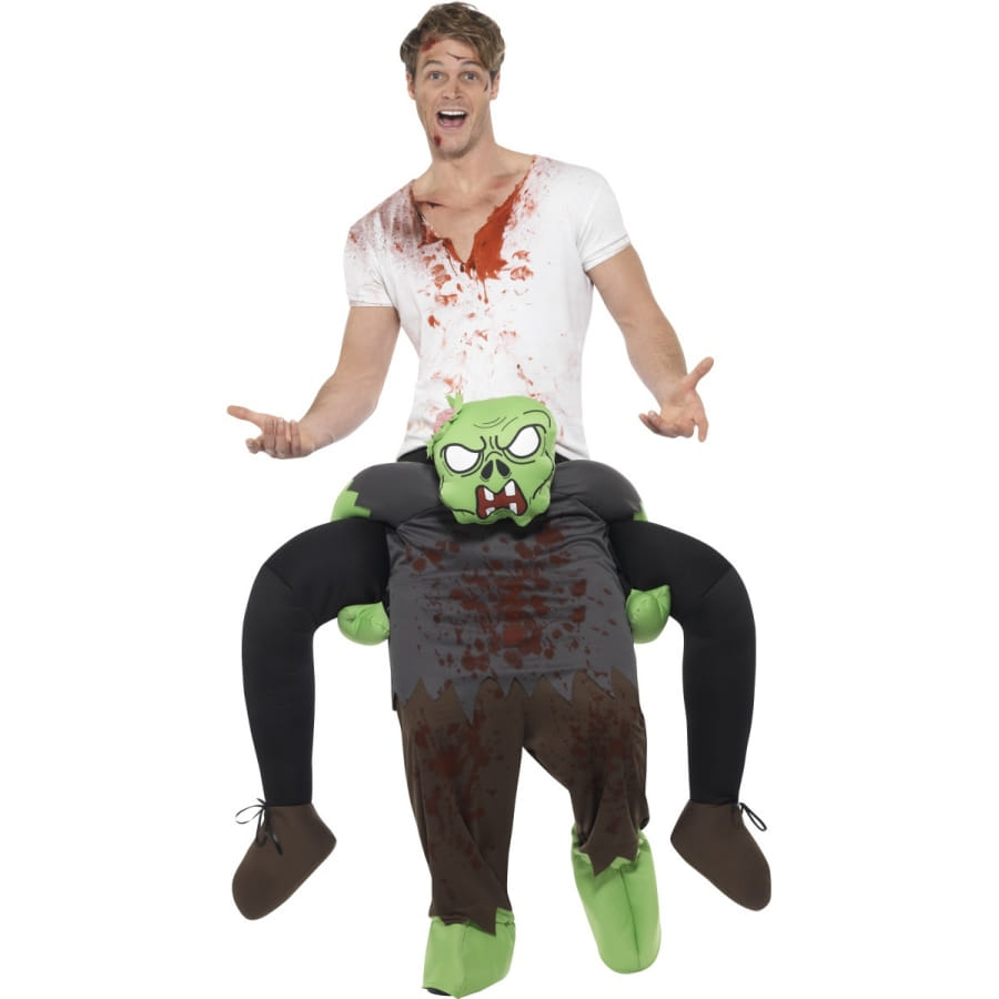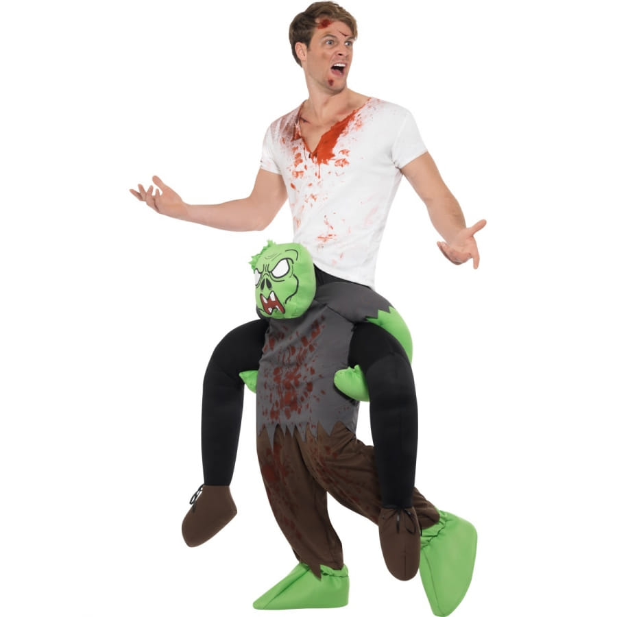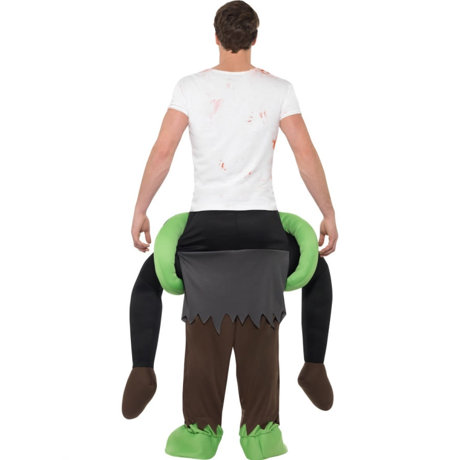 Dans le thème de la soirée d'Halloween, les déguisements en zombie sont très prisés, mais celui-ci se diffère de ces modèles habituels. Il s'agit d'un costume insolite à dos de zombie qui représente un costume en zombie à manches courtes, vert et gris tacheté de sang où le personnage affiche une mine horrible. Le déguisement quant à lui est une pièce avec fausses jambières pour créer l'illusion. Il est disponible sur notre site Happyfête.com en taille unique, ce qui en fait un déguisement authentique et original. Vous ne risquez pas de croiser une autre personne porter le même modèle à la soirée d'Halloween.