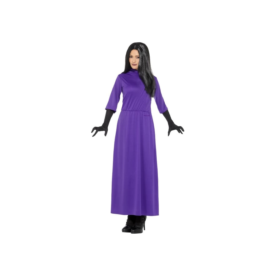 Vous connaissez Roald Dahl ainsi que son célèbre roman mettant en scène la sacré sorcière? Voici le costume inspiré de ce personnage. Ce déguisement contient trois éléments : la longue robe unie violette avec manches mi longues, la longue perruque lisse et noir ainsi que la paire de gants noirs mi-longs. Tous ces éléments complètent le costume et il n'est pas nécessaire de l'accessoiriser outre mesure. Peut être juste au niveau du maquillage : à vous de voir! D'avance bon amusement avec happyfete.