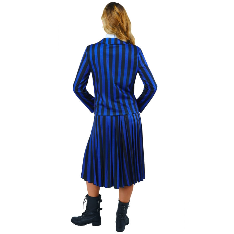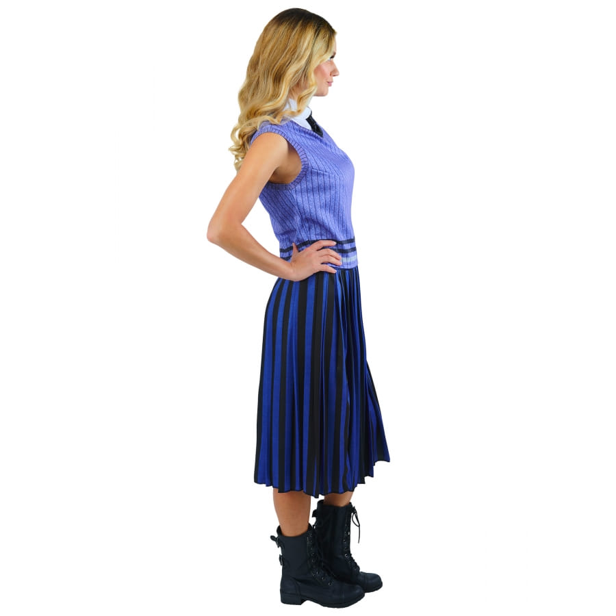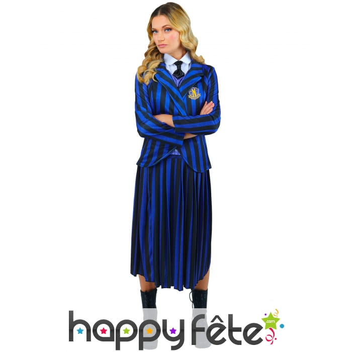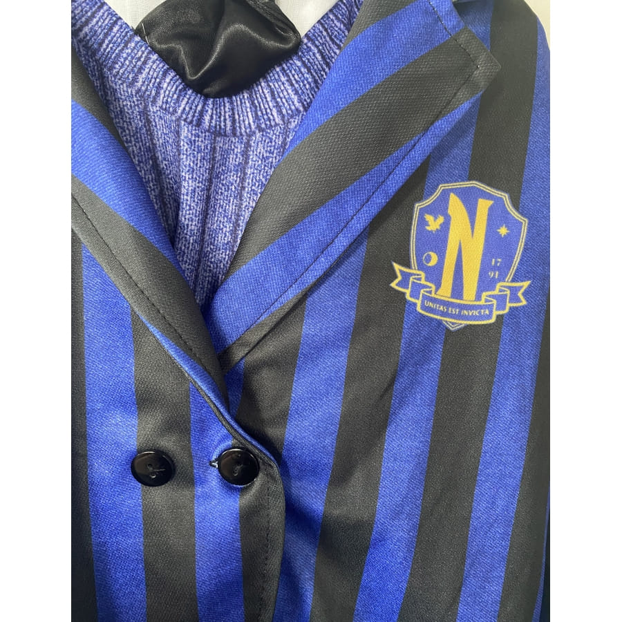 Avec ses manches longues et son bouton à l'avant, la veste est un vrai bijou de confection, qui vous plongera instantanément dans l'ambiance unique de la Nevermore Academy. Et que dire de la jupe ? Longue et fluide, elle complète à merveille le costume pour vous transformer en véritable étudiante de ce lieu hors du commun.