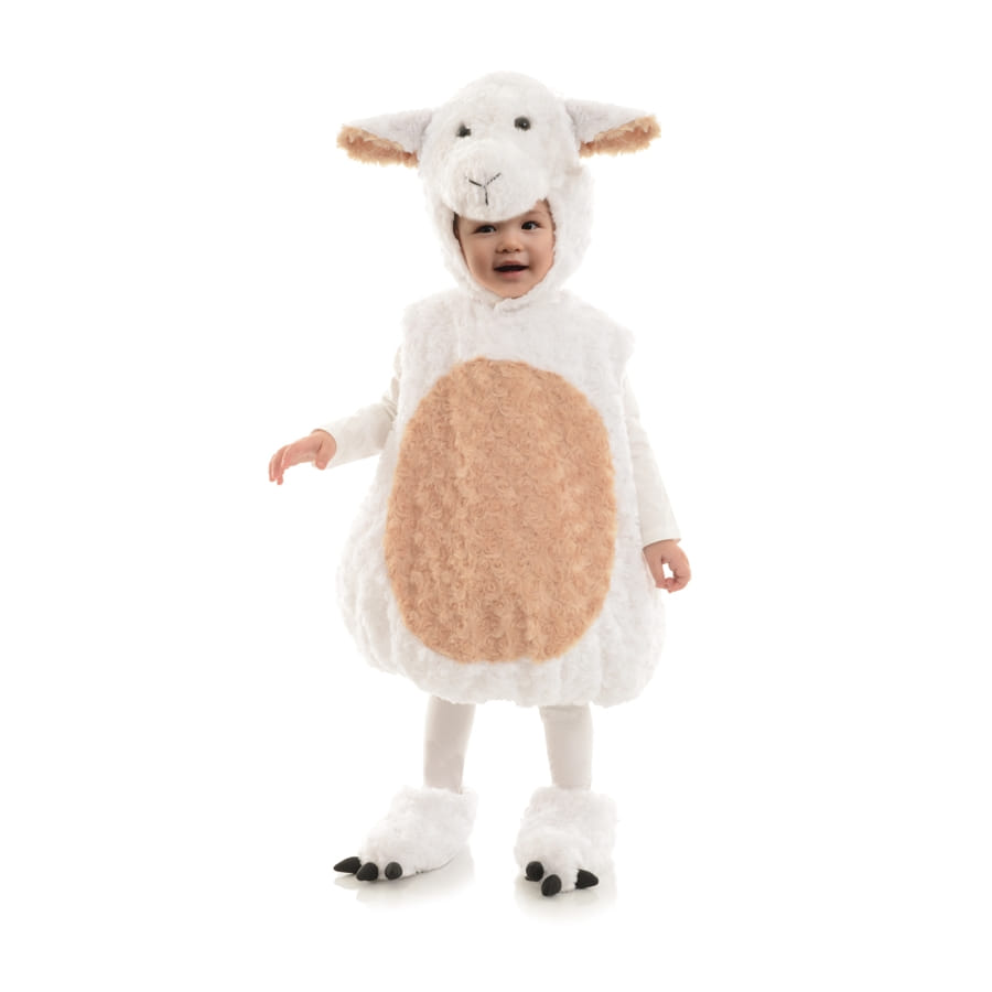 Vu que l'agneau est l'animal considéré comme le plus innocent au monde, tout comme nos enfants, nous proposons ce costume d'agneau en peluche pour enfant. Il comprend une combinaison de couleur blanche et beige au milieu, ornée d'une capuche avec la tête de l'agneau, ainsi qu'une paire de sur-chaussures blanches pour les pattes. Le justaucorps n'est pas compris dans ce déguisement unisexe. Il est pour les enfants de 18 mois à 24 mois, 2 à 4 ans et 4 à 6 ans.