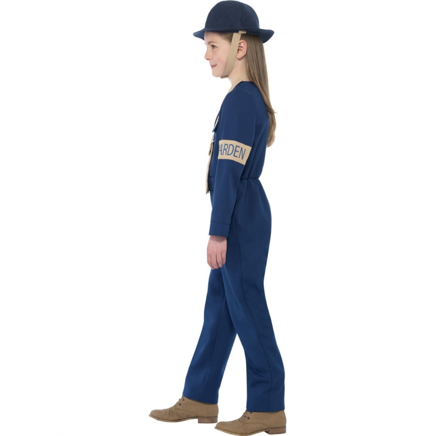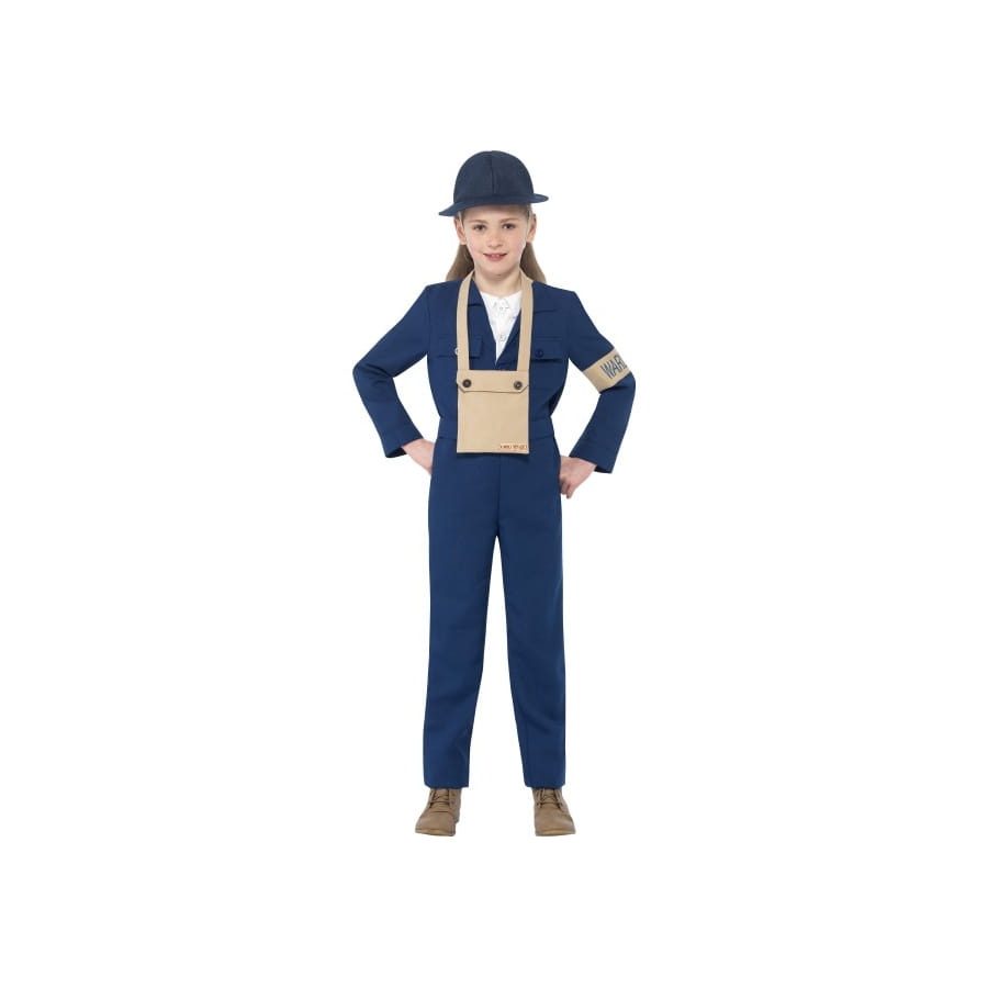 Nous avons ici un costume Air Warden de la seconde guerre pour vos enfants, afin qu'ils puissent avoir une idée des grandes histoires que notre monde a connu. Le déguisement est dédié aux fillettes entre 7 et 9 ans et 10 à 12 ans. Il se compose d'une combinaison de couleur bleue imprimée d'un brassard beige, un chapeau bleu et un petit sac bleu. Air Warden est une organisation que le Royaume-Uni a créé pour aider les civils contre le danger des raids aérien dans le prélude à la Seconde Guerre mondiale. Ce costume vous aidera donc à donner une petite leçon d'histoire à votre fille d'un côté, et à la rendre adorable de l'autre côté.