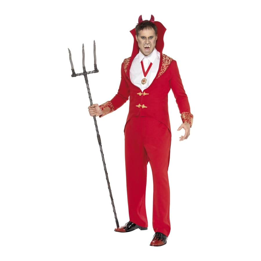 Voici un costume de diable hors du commun. Ce costume rouge vous transformera en diable élégant. Il est composé d'un ensemble rouge et blanc au niveau du torse. Le déguisement est disponible en taille L ou M. Les accessoires visibles sur la photo sont également disponibles sur le site dans les catégories relatives à chaque éléments.