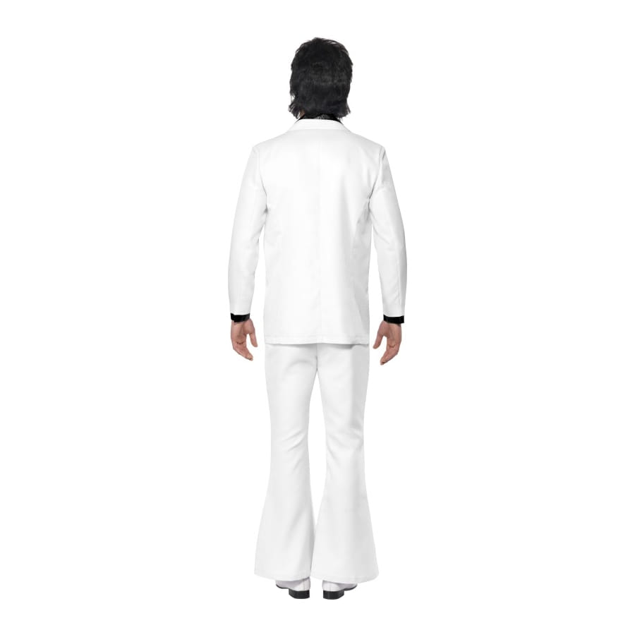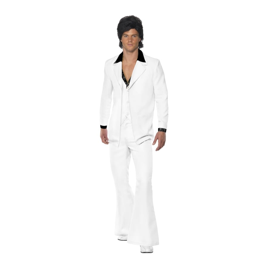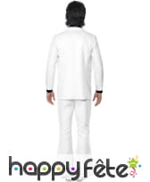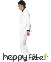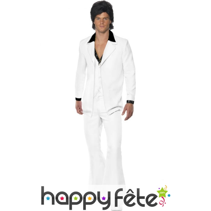 Déguisement de chanteur de charme, pour homme, composé d'une veste blanche avec chemise noire et d'un gilet blanc. Cet ensemble entièrement inspiré des années 70 est disponible en taille M, L ou XL. Il fera de vous un chanteur séduisant et romantique, de quoi faire tomber ces dames!