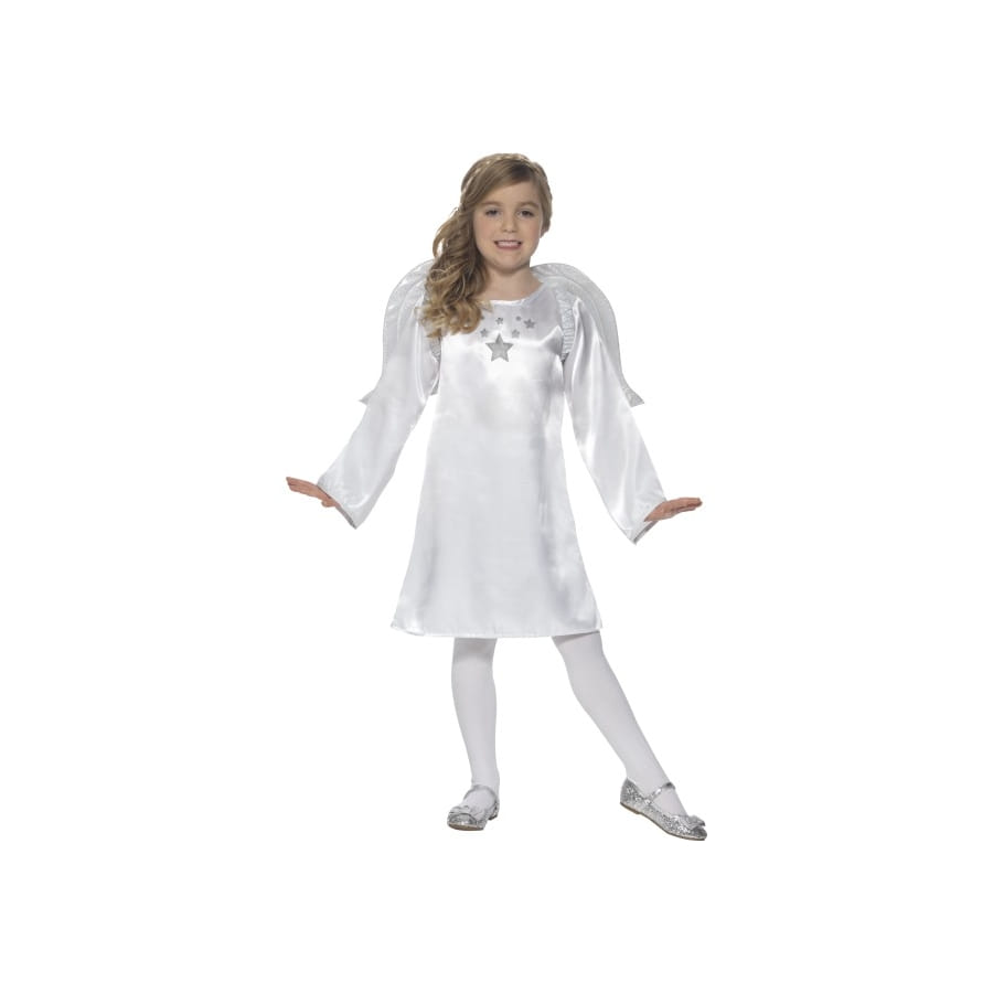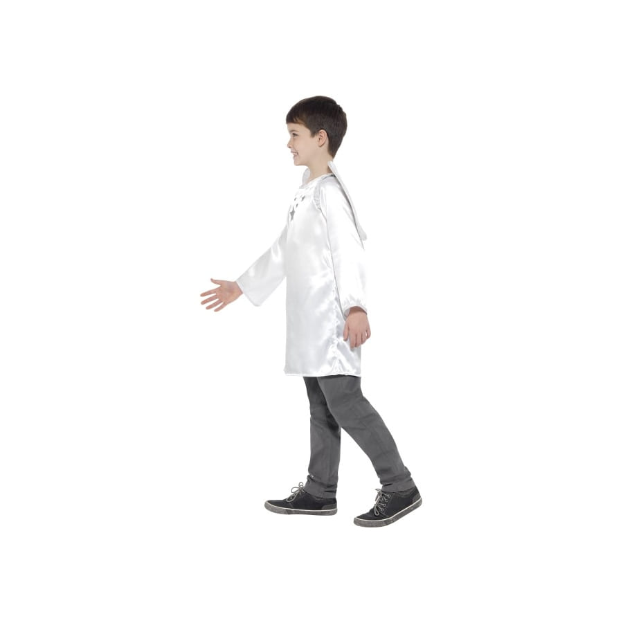 Si vous voulez habillez votre petite fille ou votre petit garçon en ange pour Noel, nous avons l'article qu'il vous faut. En effet, nous vous proposons ce costume blanc uni de petit ange. Il reste disponible sur notre site. L'ensemble se compose d'une tunique mi- longue de couleur blanche. Conçue dans un tissu satiné, elle porte de petites étoiles au niveau de la poitrine en guise de décoration. Assez large et aux manches longues, cette tunique offre un meilleur confort à votre enfant. Il se lave uniquement à sec. Une paire d'ailes, de couleur blanche également, vient compléter cette tenue de petit ange. Tout habillé de blanc, votre enfant sera le mieux déguisé pour la fête de Noel !