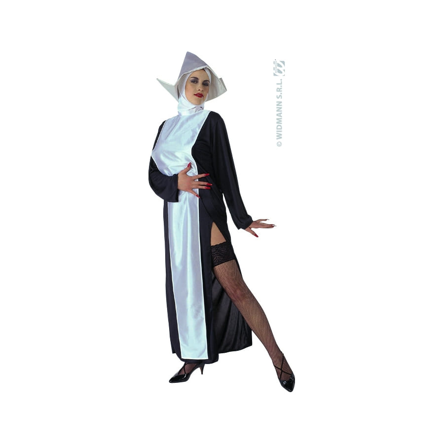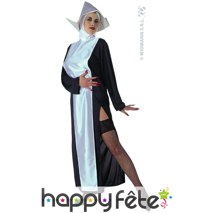 Sister Act, le remake sexy avec ce costume composé d'une robe et d'une coiffe. Cet ensemble blanc et noir est disponible en taille M, S ou XL. C'est un ensemble parfait pour se transformer en bonne soeur sexy et charmeuse.