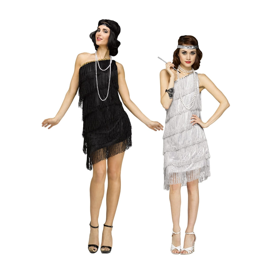 Une ravissante tenue pour faire la fête ! Ce déguisement Charleston est dédié à la gente féminine (adulte). Il se compose d'une jolie robe à franges et d'un bandeau assorti. La robe est courte, sans manches, comprenant plusieurs rangées de franges. Le bandeau, qui se serrera autour de la tête, est agrémenté de magnifiques paillettes, afin de parfaire l'ensemble. Ce déguisement existe en tailles : M / L / S (au choix) et en deux couleurs : noir et argenté (pas de choix pour la couleur). Enfilez-le à l'occasion d'une soirée sur le thème « Années 20 » ou lors d'un bal costumé, vous ne le regretterez pas !