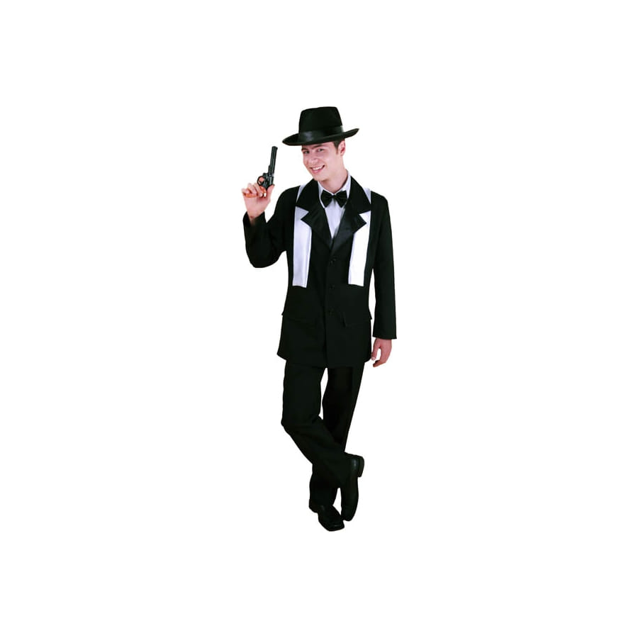 Set de déguisement de cinéma, pour homme, composé d'une veste, d'un plastron, d'une cravate, d'un pantalon et d'une écharpe. Cet ensemble blanc et noir est disponible en taille 50/52 ou 54/56. Il est parfait pour se déguiser en James Bond.