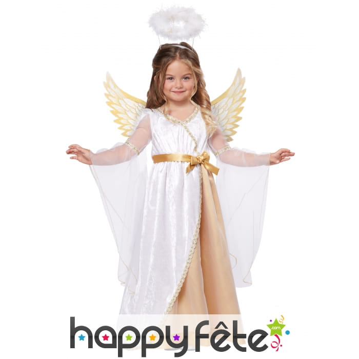 Les ailes d'ange blanches à motifs dorés parachèvent ce déguisement d'enfant.