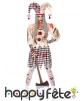 Ce Costume d'Arlequin noir et blanc ensanglanté pour femme remplira de terreur tout votre entourage.