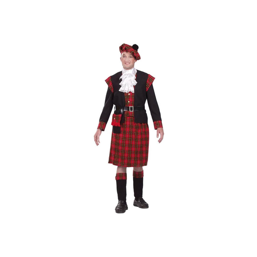 Métamorphosez-vous en Ecossais en revêtant ce costume. Vous serez très beau et élégant dans ce déguisement de bonne qualité idéal si vous incarnez un écossais célèbre ou durant le carnaval. De taille 48/50,50/52 et 54/56. Le déguisement comporte une jaquette, un jabot, une ceinture avec sac, des guêtres, un béret sans oublié un kilt. Il ne faut pas porter de culotte en dessous. Le tout est de couleur noir, rouge et vert.