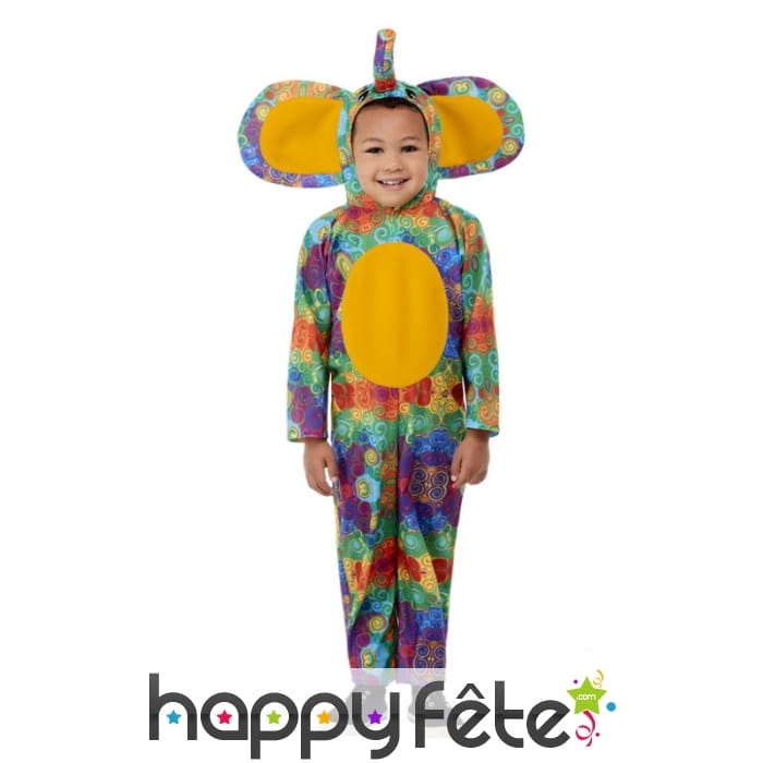 Pour une fête sur le thème animalier, nous vous proposons ce Costume d'éléphant multicolore pour tout petit.
