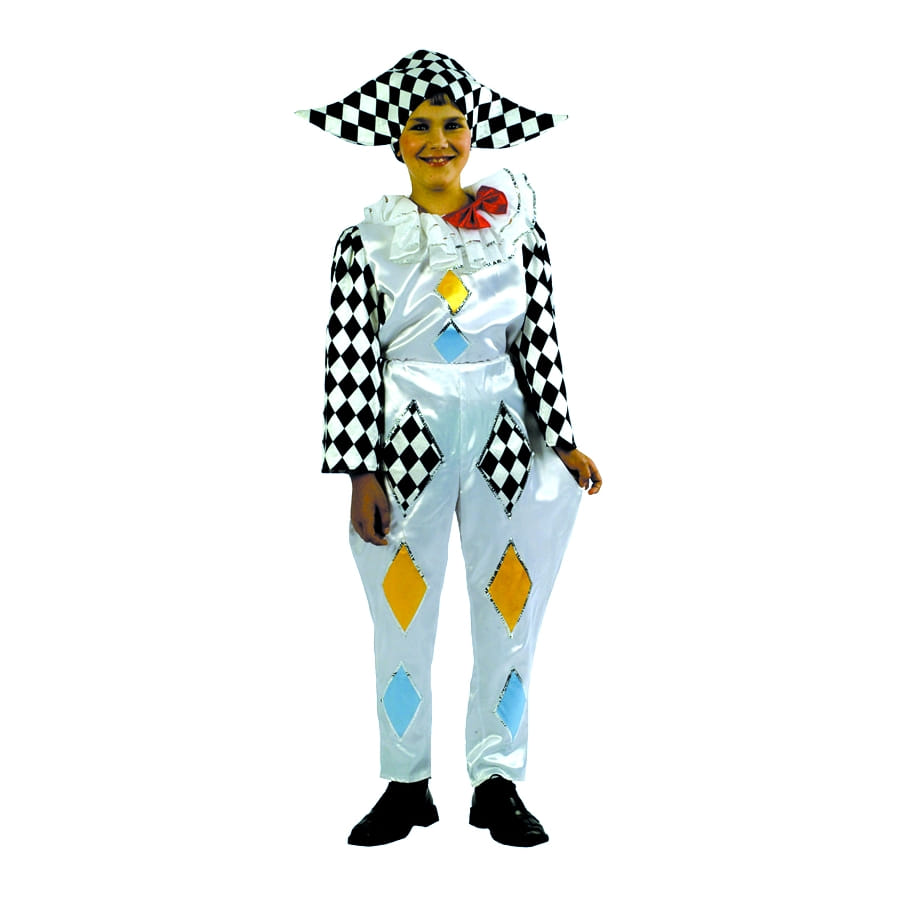 Dans ce magnifique déguisement de Arlequin ,il aura fière allure. Il pourra porter ce costume pour le carnaval ou une fête ayant pour thème le cirque, enfance ou même durant un anniversaire. Ce costume complet d'Arlequin est composé d'une coiffe noir et blanc, d'une veste et d'un pantalon noir, blanc, rouge, jaune et bleu.