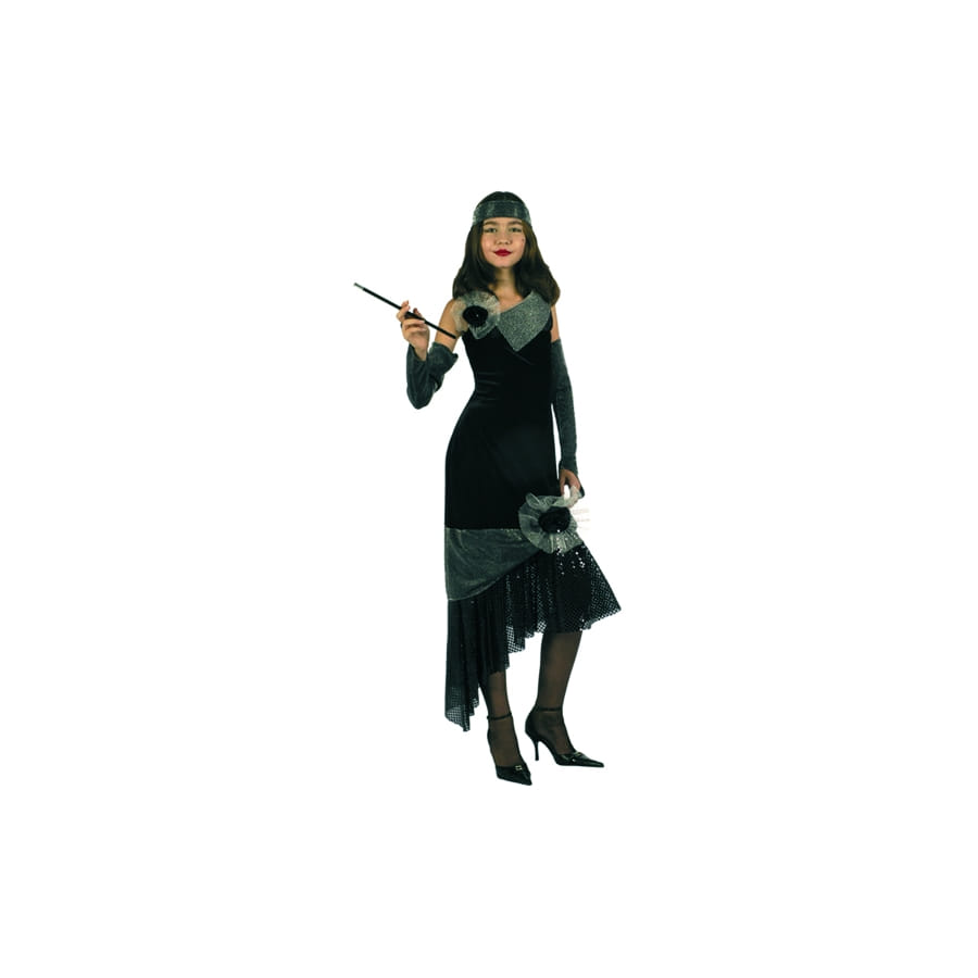 Elle sera la plus belle et la plus ravissante dans ce déguisement de charleston. Tout le monde ne cessera pas de l'admirer dans. Ce costume est parfait pour le carnaval ou si elle incarne une danseuse. De couleur noir , ce costume est proposé en taille 128, elle est composé d'une robe, des mitaines et d'une coiffe.