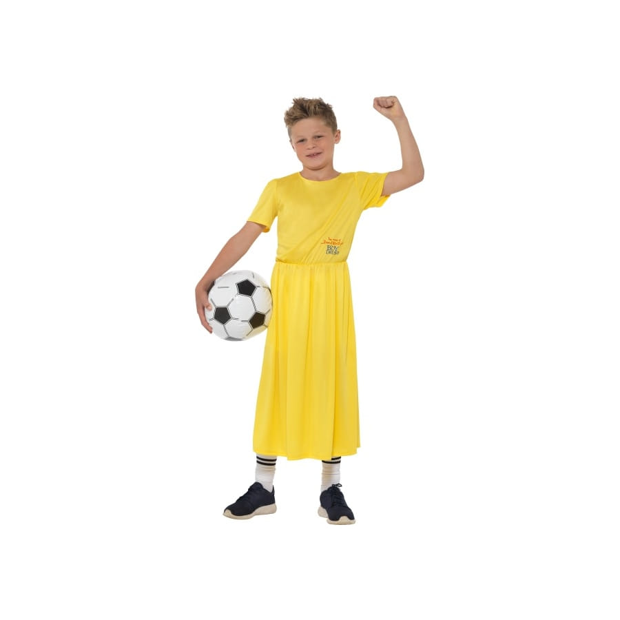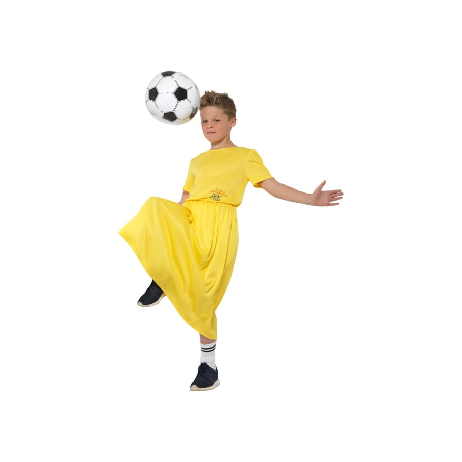 Dennis est un excellent footballeur, mais il est aussi passionné par la mode. Avec son amie Lisa, la plus belle fille du collège, il se lance dans une aventure insolite où il enfile une robe, se maquille et porte des talons. Le costume d'enfant déguisé en fille, David Walliams est inspiré du roman The Boy in the Dress. Le déguisement comporte une robe à manches courtes de couleur jaune. Sa longueur descend jusqu'à mi-jambes. Il comprend également une paire de chaussettes blanches avec deux fines bandes noires comme les chaussettes de footballeur, ainsi qu'un ballon de foot gonflable de couleur blanche et noire. L'ensemble est proposé en différentes tailles pour les 4 à 15 ans.