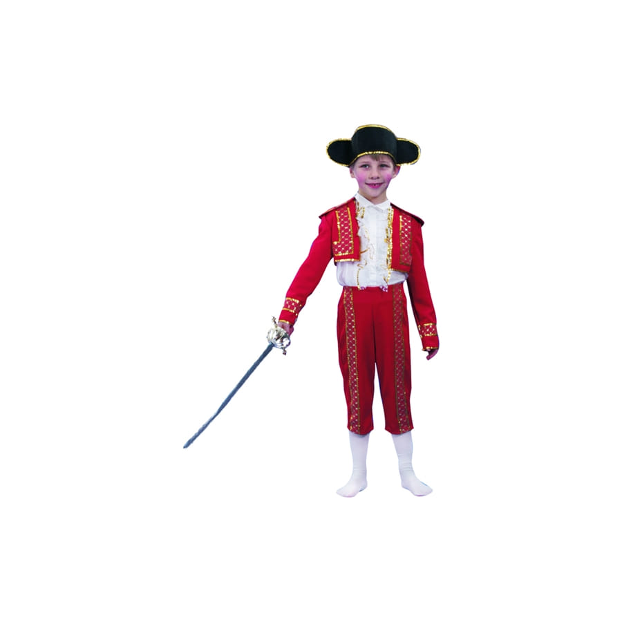 Il deviendra le roi de l'arène dans ce costume de matador. Votre enfant se sentira comme un héros dans ce costume. Ce costume de bonne qualité est pour les enfants, ce déguisement taille petit. Composé d'un pantalon rouge et or , d'une coiffe noir et or, d'une chemise blanche et d'une veste rouge, noir et or.