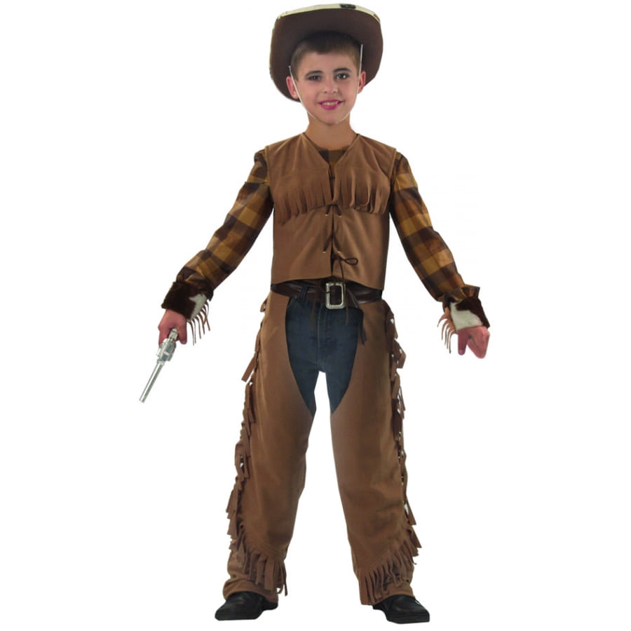 Il sera le plus redouté des tireurs du far west dans ce déguisement de cowboy. Pour un anniversaire ou avec ses amis il pourra enfiler son costume pour s'amuser. Il est composé d'un chaps avec des franges et d'un gilet, le tout est de couleur marron.