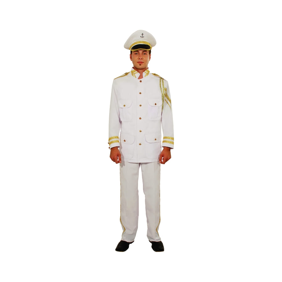 Un costume Navy pourquoi pas en mettre un pour le carnaval, vous serez un parfait séducteur dans ce déguisement , vous pourrez aussi incarner le personnage d'un marin dans. Il est disponible en 50/52 et 54/56.Il est composé d'une veste blanche avec des bandes or et argent il est aussi composé d'un pantalon blanc et d'une casquette avec le dessin d'un ancre dessus.
