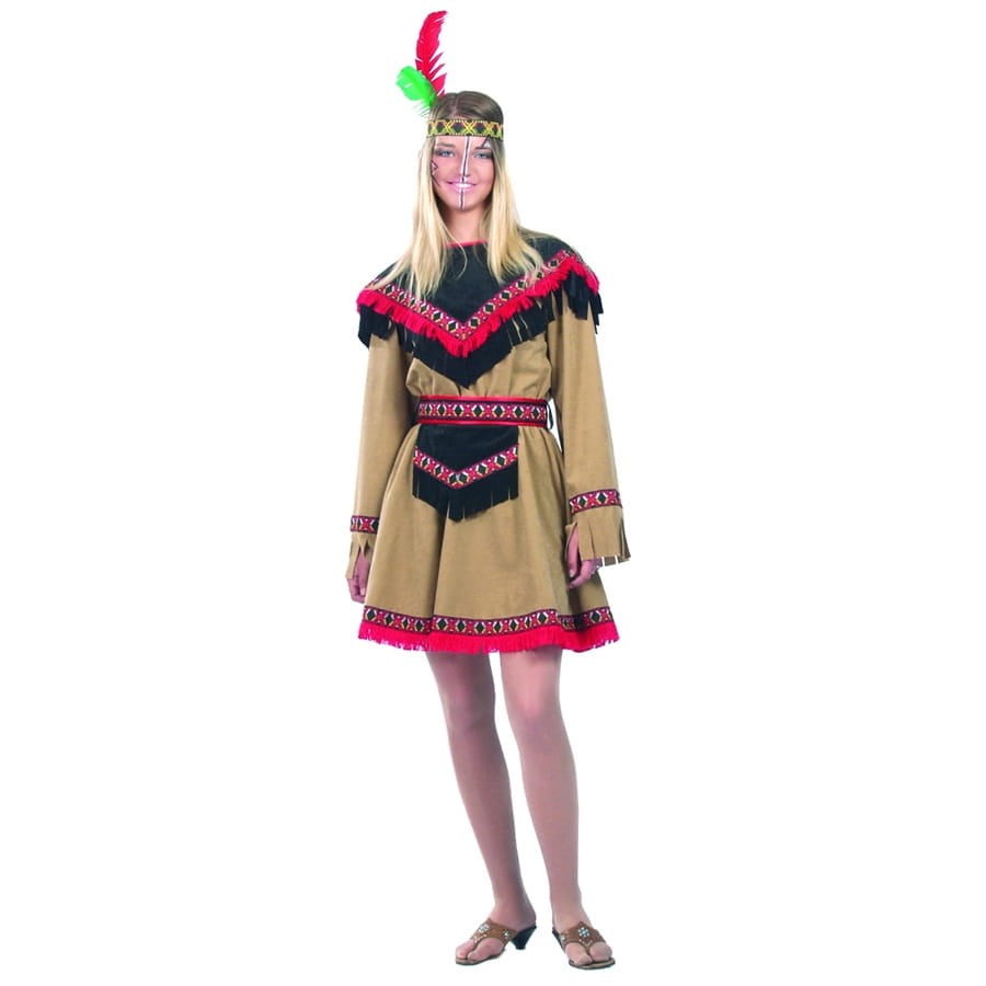 En belle indienne dans ce déguisement vous serez la fierté de votre tribu dans ce beau costume. Disponible en deux tailles: 50/52 et 54/56 , ce déguisement en beige, noir et rouge feront un effet spectaculaire sur vous lors de vos soirées à thème.