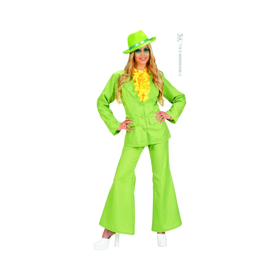 Folles des années 70 ce déguisement d'époque vous serez très belle dans pour le carnaval, vous mettrez le feu sur la piste dans ce déguisement. Ce costume vert de taille M est composé d'une veste et d'un pantalon pattes d'éléphant.