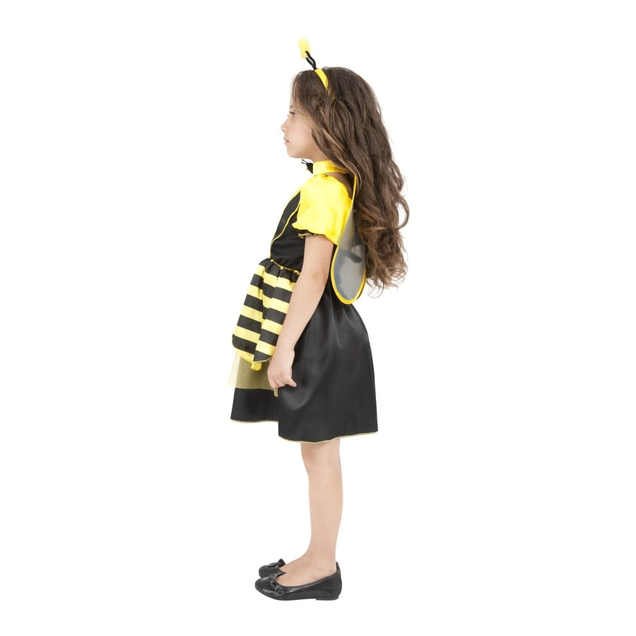 Le miel n'aura plus de secret pour votre petite fille dans ce costume d'abeille. Elle sera la reine pour le carnaval ou encore une fête sur le thème de la nature. En jaune et noir, une magnifique robe taille 7 à 9 ans avec deux petites ailes à l'arrière et un serre-tête avec deux antennes.